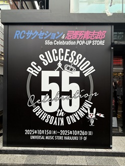 UNIVERSAL MUSIC STORE HARAJUKU 「RCサクセション&忌野清志郎 55th Celebration POP-UP STORE」 RCサクセション&忌野清志郎 今日の午前中は、UNIVERSAL MUSIC STORE HARAJUKUで15日から26日まで開催されている「RCサクセション&忌野清志郎 55th Celebration POP-UP STORE」へ。11時半に入場予約したので、余裕をもって明治神宮前駅へ。原宿なんて久しぶりだなぁ〜。原宿駅から竹下通りを通って店に着くと、既に行列が出来ている。みんな熱心だ。11時20分ごろ番号順に並び直して、予定時間ジャストに整理番号21番で入場。RCの写真パネル・パンフレット・年表がディスプレイされている。ゴキゲンな空間。最初は賑わっていたけど、みんなすぐに見終わって移動するので、最後は貸し切り状態で堪能。30分ほど見てエレベーターで3階へ移動。こちらはTシャツ・キーホルダー・クリアファイル等のグッズ売り場。やっぱり欲しくなっちゃうよねぇ〜。Tシャツは「PLEASE」「BLUE」「BEAT