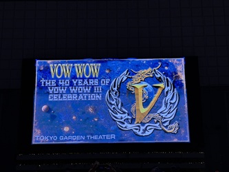 TOKYO GARDEN THEATER 「THE 40TH YEARS OF VOW WOW V CELEBRATION」 VOW WOW 今日は東京ガーデンシアターへ、VOW WOW「THE 40TH YEARS OF VOW WOW V CELEBRATION」を観に行く。2024年6月にデビュー40周年+前年5月に他界したドラマー新美俊宏の追悼として復活した“VOW WOW”。昨年1月の東京ドームシティホールでの「THE RETURN OF THE KING」と題された2days以来1年ぶりのライブ。会場のキャパシティーが倍々ゲームに膨らんで今回は8,000人。バンドは再び成長を始めている。15時半に仕事を切り上げて会場へと向かう。豊洲駅まではいつも通りの通勤経路。なんか変な感じ。豊洲駅からはゆりかもめに乗る。今回は有明駅からアプローチ。時間は17時半、まだそれほど混雑していない。開演時間まではかなり時間があるので、隣にある「有明ガーデン」を散策。いろいろな店があって飽きない。18時半ごろ会場入り。今日の席は4階バルコニー2 2Eブロック8列6番。ステージはちょっと遠いけど視界は良好。ステージは緞帳で覆われていて、まだステージセットは見えない。客席はアリーナからバルコニーまで超満員。 予定より遅れて、19時05分ごろ開演。「Premonition」が流れる中、ステージを覆っていた緞帳が開いて「Hurricane」が始まる。Vocal:人見元基、Guitar:山本恭司、Keyboards:厚見玲衣、そしてサポートメンバーのBass:永井敏己、Drums:山本真央樹。ドラムの真央樹は今回初めて参加する恭司のご子息・・・なんだか感慨深い。バルコニー席にも関わらず、客席はいきなり総立ち。最初は音がモヤッとした印象だったけどすぐに解消。ステージ後方には“V”のロゴが入ったバックドロップ。レーザーの照明がフロアを煌びやかに照らす。今回のライブは「THE 40TH YEARS OF VOW WOW V CELEBRATION」と題されているけど、選曲は各アルバムから満遍なくという感じ。演奏はもちろん最強で最高! その凄さに圧倒される。その一方、MCはほんわかムード、悪く言えばグダグダ(笑) だけどそんなところがまたイイ。恭司のギターソロももちろんアリ。その卓越したテクニックと多彩なサウンドに聴き惚れる。「You're The One For Me」は元基がトチって頭からやり直し。確か前回もだったような。ここで25分間の休憩をはさんで、20時50分頃から第2部が始まる。まずは元基がひとりステージに登場して、「Cry Me A River」をアカペラで唄う。こんな広い会場をその唄声だけで魅了してしまう・・・やっぱり元基のヴォーカルは唯一無二。再びメンバーが加わって「Don't Leave Me Now」「Break Down」を演奏したあと、厚見さんのキーボード・ソロ。これまた強烈。要塞のように積まれたたくさんのキーボードを巧みに操る。まるで唄っているみたい。ライブ終盤は「VOW WOW V」のナンバーが続く。「Pains Of Love」から始まって「Nightless City」。このあたりから恭司はフェニックスSGを使用。ワイヤレスで広いステージを右に左に動き回り弾きまくる。厚見さんのショルダーキーボードが登場したのも確かこのあたり。このビジュアルは他では観られない。そして「Go Insane」から「Shot In The Dark」で本編は終了。いやぁ〜この流れ最高だわ。 アンコール、メンバーが再びステージに登場。「最近はワインじゃないんだよ」と元基。すっかり大人になったな(笑)ここで23日の大阪公演に続いて、31日に川崎CLUB CITTA'でオールスタンディングの追加公演を行うことを発表。今年はそれで終わるけど、来年の今ごろ再びライブをやることを約束。「また来年会おうぜ!」という言葉にグッとくる。そして始まったのは「Rock Me Now」。アンコールを飾るにふさわしいスケールの大きな曲。「Rock me now, rock me out! Shake me 'til the end of time」とみんなで合唱。アリーナが金色のテープで埋まる。ラストは「Shock Waves」。まさに大団円という感じ。最後にみんなで記念撮影をして、22時05分ごろ終演。 終演後、豊洲駅までブラブラと歩く。それほど寒くなくて、ちょうどいい気候。空気が澄んでいるので、夜景がメチャメチャ綺麗。のんびりと歩いていたら40分以上かかってしまった。時間は既に23時過ぎ。通勤経路通りに地元駅まで戻って、駅前の「磯丸水産」で打ち上げ。気がつけば今週2回目。オーダーを工夫して、しっかりと楽しむことが出来た。おかげで呑み過ぎ食べ過ぎ。2時間以上のんびりと満喫して、2時過ぎにおひらきにして帰宅。 【セットリスト】