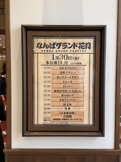 なんばグランド花月 「本公演」 ヨネダ2000、男性ブランコ、ロングコートダディ、トミーズ、メンバー、西川のりお・上方よしお、ギャロップ、タカアンドトシ、桂 文珍、吉本新喜劇 いつも通りに7時25分に起床。旅に出ても起床時間は変えない主義。今日は6時台の新幹線に乗れば何気ない顔して出勤できたけど、せっかくだから休みをとった。そんなに真面目に生きてもしょうがない。自分が困らない程度に不真面目にいくことに決めた。テレビを観ながらベッドでウダウダして、10時前にはチェックアウト。御堂筋線でなんば駅まで移動。「お勤め帰りにまたご利用頂けることを楽しみにしています」という車内アナウンスがエモくて良い。千日前はまだそれほど混雑していない。久しぶりに「なんばグランド花月」で吉本新喜劇の本公演を観る。週末だとなかなかチケットが取れないけど、平日の昼間だとさすがに当日券もある模様。10時40分ごろ会場入り。今日の席は1階指定席T列21番。ちょっと後方だけど、ステージはよく見える。それにしてもよく入っている。修学旅行の高校生とか、団体さんがけっこう多いみたい。11時開演で前半80分は漫才・コント・落語、後半45分は吉本新喜劇という構成。前半に登場したのは、ヨネダ2000、男性ブランコ、ロングコートダディ、トミーズ、メンバー、西川のりお・上方よしお、ギャロップ、タカアンドトシ、桂 文珍 の9組。持ち時間は5分〜15分。これぐらいの会場になるとマイクを通しているとは思うけど、地声の大きさが人によって全然違うように感じる。今日の中では“タカアンドトシ”が断トツの声の大きさ。会話がものすごくわかりやすくてゲラゲラ笑ってしまった。初見の“メンバー”と“ギャロップ”もそれぞれ良かったな。“メンバー”は最初「リズムネタ?」と思ったけど、キーボードを弾きながらのネタが面白かった。“ギャロップ”は今風の漫才という感じ。こちらも面白かった。“トミーズ”と“西川のりお・上方よしお”のベテラン勢は、ネタというより会話を聴かせる感じ。これぞベテランの味。“ロングコートダディ”のコントは、テレビで観たことのある高校野球部員の話。ロッカーに閉じ込めるシーンが可笑しい。桂 文珍の落語はさすがのおもしろさ。落語のフォーマットに「今」を取り入れているところがスゴイ。言葉の使い方が抜群で、そのたびにドヤ顔(笑) もはや笑うというより感嘆するという感じ。10分ほどの休憩をはさんで、後半は“吉本新喜劇”。こちらも安定したお決まりのお笑い。とある山のペンションを舞台に、テレビ収録のため「雪男が居る」と嘘をつくところから始まるドタバタ。セリフで笑わせる人、ギャグで笑わせる人、動きで笑わせる人・・・いろんな要素が入り乱れる展開。そして山田花子とMr.オクレの存在感。一度売れた芸人はやっぱりオーラが違うのだろうか?13時25分ごろ終演。期待通りにおもしろかった。 会場の外へ出ると雪が降っている。えぇーっ!聞いてないよ。これだけ寒いからなぁ〜。まさか積もらないだろうな?少し心配になりつつも、お腹が空いたので腹ごしらえ。お好み焼きにするか? 串カツにするか?究極の選択で「風月」のお好み焼き!と思ったのに改装中・・・。というわけで「ひょうたん」という串カツ屋へ。ちょっと小洒落た店で「どうかな?」と思ったけど、これが大正解! 串カツがめちゃくちゃ旨い。店員さんもすごくイイ感じで、金曜日の昼下がりにのんびりと呑み喰いすることが出来た。ありがとう!昨日と今日とかなり呑み過ぎ食べ過ぎという感じなので、これで切り上げて帰ることにした。16時24分新大阪駅発の新幹線に乗って東京へ。滋賀あたりでは雪が降っていた。19時前には東京駅に到着。今回の遠征も楽しかったな。 |