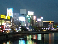 冗談抜きで20時近くまで外が明るかった。お腹が空いてきたので再び外出。中州は良さげな店が無かったので、川端の「竹乃屋」という店へ。こじんまりとしたカウンターで立ち呑み。ゴマサバ、とりかわ、焼とん、焼さば、馬刺し・・・全て美味しい。繁桝という日本酒も満喫。博多は呑み物・食べ物、なんでも旨くてイイ。前乗りしてきた甲斐があった。すっかり食べ過ぎたので、しばらく散歩して腹ごなし。那珂川の川面に映るネオンは相変わらず素敵。キャナルシティは、お店が閉まっているのに建物はオープンしているのが不思議。飾り山笠もライトアップ。24時になろうとする頃、「はかたや」のラーメンでシメ。とんこつラーメン290円は安過ぎる。真夜中の「gate's」を探検したあと、24時半過ぎにホテルへ戻り、ちょっとだけ呑み直して就寝。
