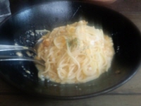 22日、朝、意味もなく7時45分に目覚める。旅に出ると不思議なことに、どんなに夜更かししても早い時間に目が覚める。やっぱり神経が覚醒しているからなのかな・・・? 外はあいにくの雨・・・うーん、どうしたものかとウダウダ考える。10時にチェックアウトして、あたりをブラブラ。12時ごろ地下鉄に乗って大濠公園駅へ。お目当ては、早希ちゃんが「ロケみつ」で行ってた「らるきぃ」というお店。駅から少し歩くと、なにやら人だかり・・・ それが「らるきぃ」に入るための行列。並ぶのが嫌いな性分なのでどうしようかと思ったけど、意を決して列に並ぶ。並んでいたのは15人ぐらいだったか、30分ほどで店に入ることが出来た。注文はもちろん“ペペたま”。いっしょにビールを・・・と思ったけど、メニューに無いので断念。しばらく待って“ペペたま”にありつく。ペペロンチーノに卵とにんにくがまぶしてあるという感じ。あっという間に完食して、13時20分ごろ店を出る。せっかくなので近所の大濠公園へ。名前のとおり、大きな濠がいい感じ。ビールを飲みながらしばらくまったりとして、地下鉄で福岡空港へ。15時15分発のANA258に乗って、羽田空港へと戻る。空港からはリムジンで調布へ。渋滞に巻き込まれることもなく、1時間半で調布に到着。調布で晩ごはんを食べてから、20時ごろ帰宅。